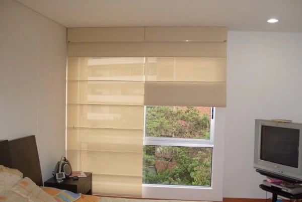 Las persianas romanas permiten un control de la luz fácil y eficaz. Se pueden ajustar según la hora del día o la temporada; si se requiere oscuridad total estas pueden ser fabricadas en tela Blackout.
